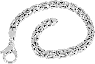Bitte beachten Sie: Zu dieser Kette führen wir ein passendes Armband unter der Artikelnummer SA-10 (nicht in diesem Angebot enthalten). Merkmale: - Kettenart: Königskette vierkant. - Material: 925 Sterling Silber rhodiniert und 4-fach diamantiert. - Breite der Kette: 5mm. - Höhe der Kette: 5mm. - Verschluss: massiver Karabiner. Wunderschöne Königskette aus 925er Sterling Silber mit einer Breite von 5mm, auswählbare Länge 55cm - 65cm und ca. 73gr - 87gr. HOCHGLANZPOLIERTE*, RHODINIERTE und DIAMANTIERTE* Oberfläche, bestehend aus vielen einzelnen Gliedern, die von Hand gearbeitet ist. Der Verschluss der Kette ist mit einem stabilen Karabiner verziert. Als Königskette wird eine Collier - Kette bezeichnet, deren Glieder auf eine spezielle Art miteinander verflochten sind.