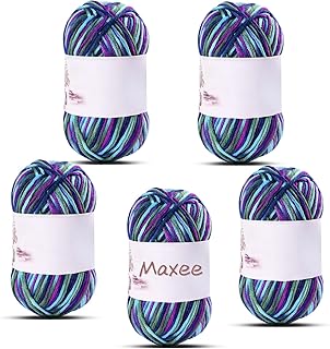 Maxee 250g(5x50g) Regenbogen Handstrickgarn, Häkelgarn Bunt Farbverlauf, Häkelwolle, Acrylgarn zum Stricken, Baumwolle Wolle, Mehrfarbiges Garn zum Stricken Häkeln und Bastel (Lila Blau Grün)