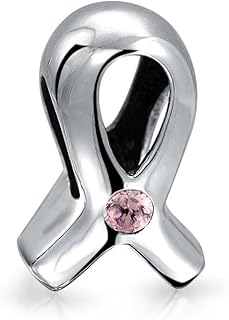 Pink CZ Support Ribbon Brustkrebs Survivor Charm Perle für Frauen Oxidiert 925 Sterling Silber passt europäisches Armband