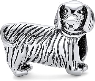 Welpen Haustier Tierliebhaber Dackel Hot Dog Charm Perle für Frauen für Teenager Oxidiert .925 Sterling Silber passt europäisches Armband