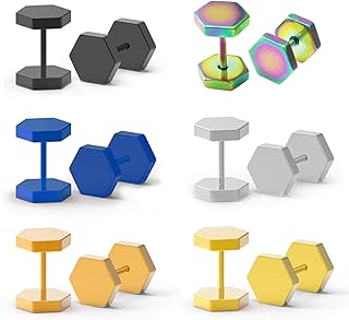 Ohrstecker Knopf, 12 Stück Set Edelstahl Herren Ohrstecker Damen Ohrringe Ohrhänger Gestüt Stecker Tunnel Hexagon Ohrstecker Männer Frauen Ohrschmuck