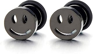 Lächelndes Gesicht Ohrstecker Herren Damen Jungen, Gestüt Ohrringe Edelstahl, Ohrschmuck, 2 Stücke, Rock Punk