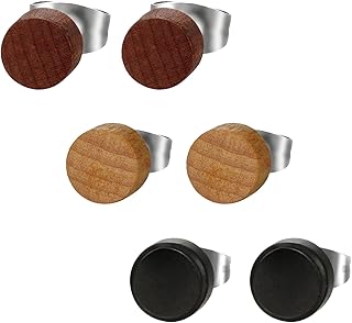 Holz Ohrstecker Ohrschmuckset, 6 Stück 8mm Holz Edelstahl Ohrstecker Gestüt Stecker Ohrringe Holz Farbe Kaffee Braun Schwarz Fake Plug Tunnel Ohrstecker Piercing Ohrschmuck Herren,Damen