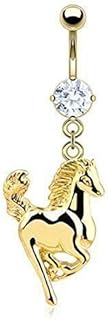 | Bauchnabelpiercing Banane Edelstahl Chirurgenstahl 316L Vergoldet 14 K Zirkonia Anhänger Pferd