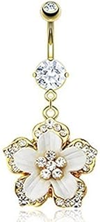 | Bauchnabelpiercing Banane Edelstahl Chirurgenstahl 316L Vergoldet 14 K Zirkonia Anhänger Hawaii Blume