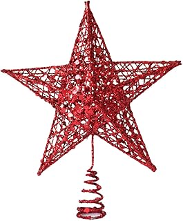 GEMVIE Weihnachtsbaumspitze 3D Glitzer Stern Spitze Christbaumspitze 20cm Weihnachtsstern Weihnachtsbaum Decoration Eisen Weihnachtsdeko Rot