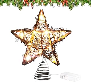 Huahuanghui Weihnachtsbaumspitze Glitzer-Stern 20 LED,Rattan,Christbaumspitze Weihnachtsbaum,Christbaumspitze Stern,Weihnachtsbaumspitze Dekoration,Beleuchtete Christbaumspitze in Warmweiß