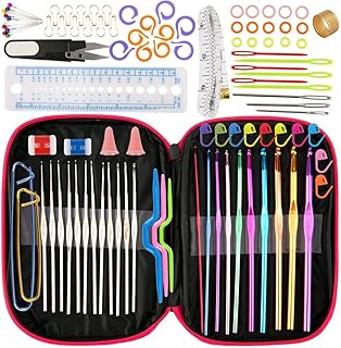 Queta Häkelset mit 100 Stricknadelzubehör, ergonomisch gefärbter Häkelnadel, Tragetasche