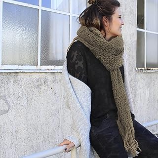myboshi Häkelset Schal Futtsu, inkl. No.1 Wolle, Nadel und Anleitung, für Mützen und Schals, DIY-Häkelpaket, 30% Merinowolle Schlamm mit Häkelnadel