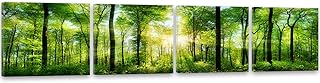Feeby Frames, Leinwandbild, Bilder, Wand Bild - 4 Teile - Panoramabild, Wandbilder, Kunstdruck 60x240 cm, Wald, BÄUME, Sonne, Natur, GRÜN