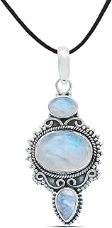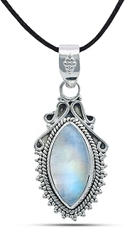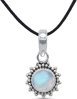 Kettenanhänger Amulett Silber 925 Sterlingsilber Regenbogen Mondstein weiß Stein (Nr: MAH 99-04)