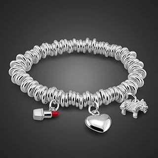 925 Sterling Silber Armband, Mode Anhänger Frau Herzförmigen Charme Bangle, Persönlichkeit Elastischen Ring Silber Armreif, Lady Schmuck Armband Accessoires Festival Paar Geschenk Der Freundschaft