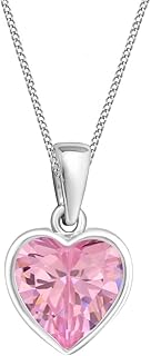 Rosa Zirkonia Herz 40cm Halskette 925 Echt Silber Mädchen Damen Kinder Kette (M8 / Rosa Herz Halskette 40cm)