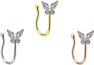 Happyyami Fake Nasenringe Schmetterling Nase Manschette Clip auf Nase Hoop Ring Fake Piercings Nasenring Hoop für Hochzeit Party Tanz Performance Cosplay