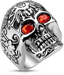 Totenkopf Ring Herren Edelstahl Biker Skull Kristall Auge Rot Gothic Punk Massiv Tribal Rocker