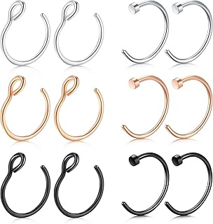 12Stk 20G 8mm Nasenpiercings Fake Nasenring Edelstahl Fake Piercings Nase Face Piercing Nase Lippe Ohr Ring Hoop für Männer Damen