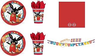 Party Store web by casa süße Haus Bing Coordinato ADDOBBI Festa - Kit Nr. 6 CDC-(8 Teller, 23 cm, 8 Gläser, 16 TOVAGLIOLI,1 TOVAGLIA)