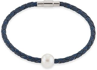 Leder Schmuck (Armband) Leder Armband geflochten Farbe blau mit Süßwasserperle Größe ca. 19 cm Edelstahl Magnetverschluss Modellnummer 1007