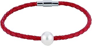 Leder Schmuck (Armband) Leder Armband geflochten Farbe rot mit Süßwasserperle Größe ca. 19 cm Edelstahl Magnetverschluss Modellnummer 7072