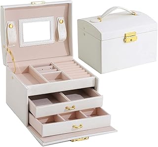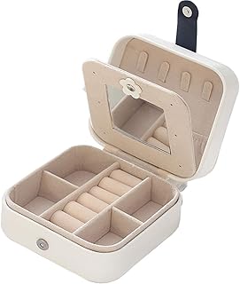 XYDZ Schmuckkästchen Damen Schmuckkästchen Reisen, Schmuckkoffer Klein Schmuckbox Schmuck Aufbewahrungsbox Tragbar Schmuckschatulle mit Spiegel, für Ringe Ohrringe Halskette (Weiß)
