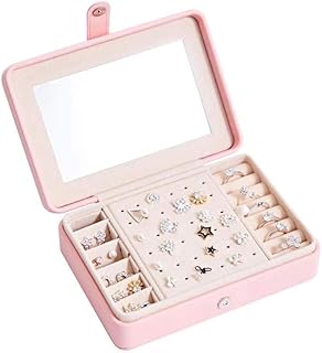 croselyu Schmuckkästchen mit Spiegel, Reise-Aufbewahrungsbox, für Ohrringe, Ohrstecker, Halskette, Ring, Lippenstift, Schmuck, Aufbewahrungsbox für Mädchen (style1)