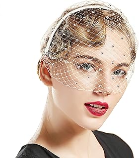 Coucoland Damen Elegant Fascinator Schleier Haarreif 1920s Stirnband Hochzeit Cocktail Party Mystische Maske Haarreif Damen Halloween Fasching Kostüm Accessoires (Stil3 - Weiß)