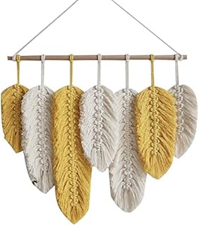 Weldomcor Makramee Wandbehang Blatt Feder Tapisserie Boho Deko Chic Wanddekon Wandteppich Handgemacht Wohnungs dekorationen böhmischen Wohnzimmer Wohnung Schlafzimmer Hochzeit Dekor, Gelb