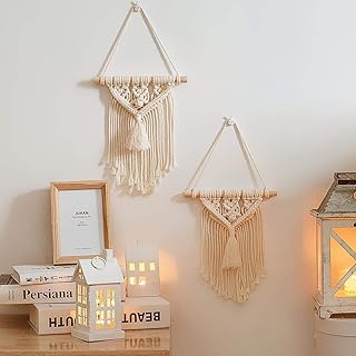 Hylulu Klein Makramee Wandbehang 2 Stück Boho Deko Wandteppich Handgemacht Gewebte Tapisserie Wohnzimmer Schlafzimmer Wand Deko