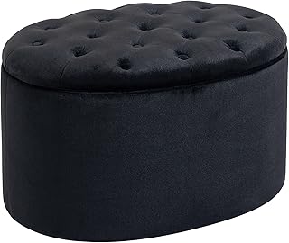 HOMCOM Sitzbank Polsterbank mit Stauraum Truhenbank Ovale Form Flur Schlafzimmer Wohnzimmer samtartiges Polyester Gummiholz Schwarz 71 x 52 x 42 cm