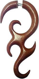 Fake Piercing Sawoholz Edelstahl handgeschnitzt groß braun rotbraun Dehner |Herren Damen Lobe Holz Expander Dehnschnecke Spirale Hook |Unisex Ohrstecker Ohrring Ohr Schmuck